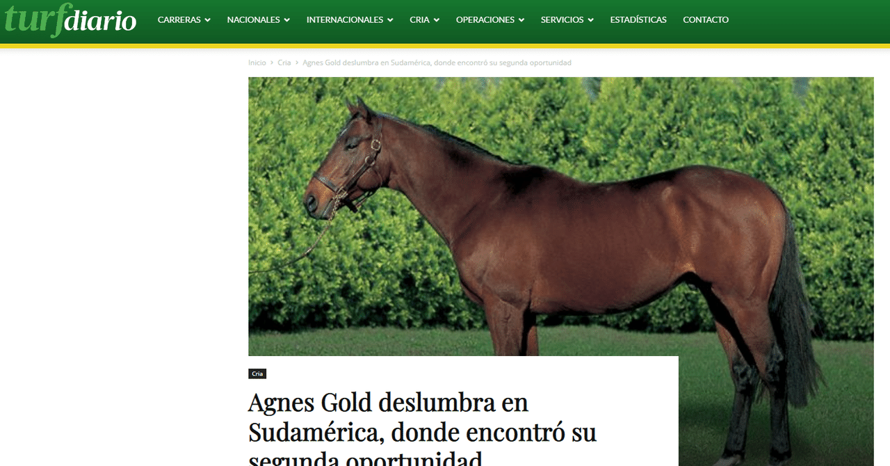 伯国におけるアグネスゴールド産駒の席巻ぶりは、日本でサンデーサイレンス産駒が走り始めた頃-1990年代中期-を思い出すところです。しかし残念なことに、アグネスゴールドは感染症により生殖機能の問題が発生し、2020年に種牡馬引退したということ。