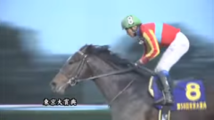 青鹿毛の流星がその父エルコンドルパサーに最初で最後のクラシック制覇を贈った瞬間でした。
