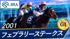 2004年の第56回朝日杯フューチュリティS。16頭立ての中山芝1600mを道中中団位置から徐々に進出、4角では外から2番手まで押し上げると、直線では馬場中央外側から抜け出しに掛かりました。額にハート型の流星も麗しい鹿毛、青の帽子に「赤、緑袖赤一本輪」の勝負服に鼓舞されると、決勝点では2着のストーミーカフェ(2002.3.24)に2馬身差。その勝ち時計1分33秒4はエイシンチャンプ(2000.3.23)が持っていた1分33秒5をコンマ1秒更新する2歳レコードタイムでした。