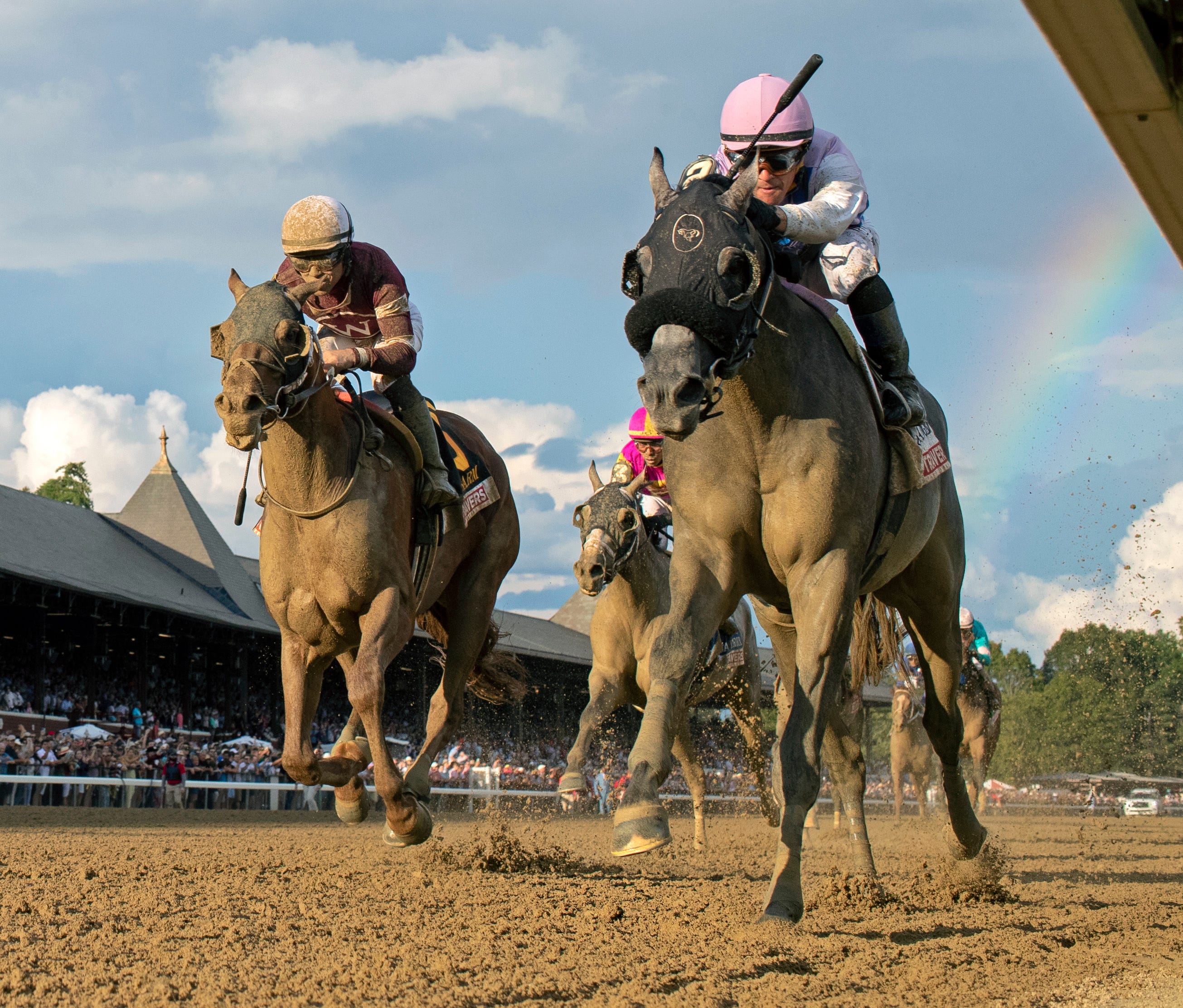 ↑で引いたThe New York Racing Association, Inc.の動画の中でも「Midsummer Derby」と実況されていますが、例年8月のサラトガ・ダート10ハロンで行われる「真夏のダービー」トラヴァーズS。2023年の一戦は、父Arrogateが彗星の如く現れて現在も残るトラックレコード1分59秒36で駆けてから7年、仔Arcangeloが見事に父仔2代制覇を遂げたという結末でした。