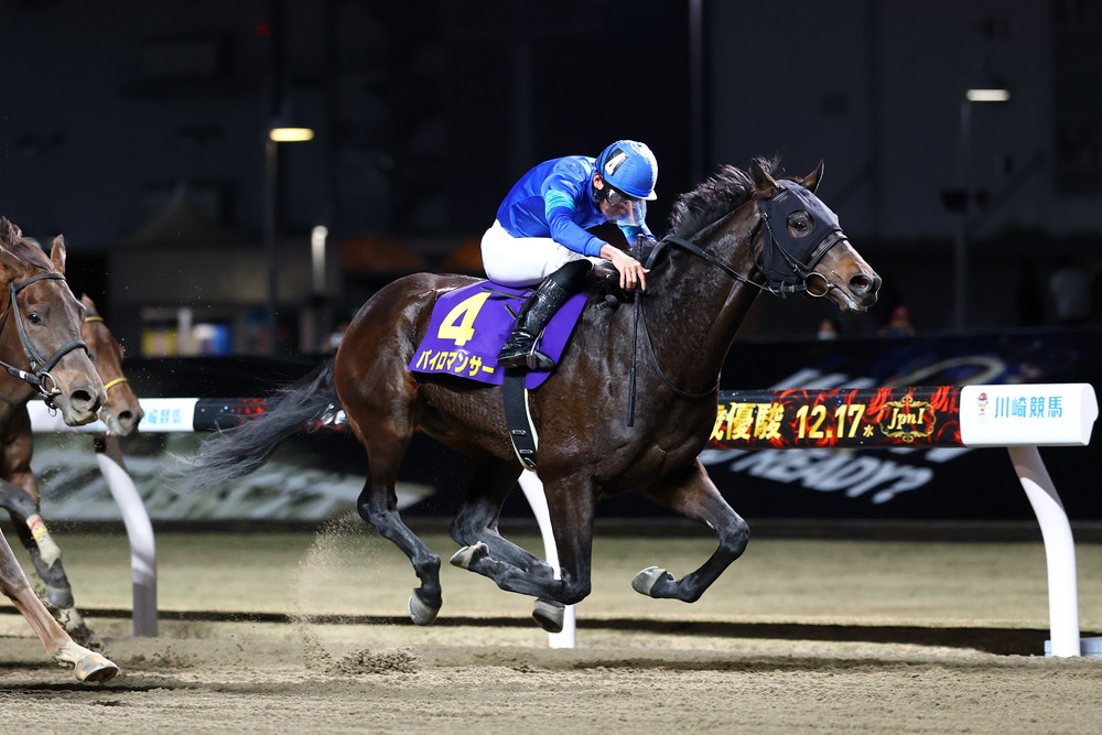 2025年の第76回全日本2歳優駿。JRA勢5頭、NAR勢4頭で行われた一戦。勝利を収めたのは戦前2番人気だったパイロマンサー。レースは8枠から飛び出したイダテンシャチョウ(2023.4.6)が引っ張る展開。入りの600m37秒6、1000m通過64秒4と2歳のダート戦とは言えサスガにゆったりとした流れ。川崎ダートの3角から4角、小回りコースの急カーブを滑るようにして進出したのが内の2番手のパイロマンサー、外の3番手にいたベストグリーン(2023.2.3)。直線、外から被せるようにベストグリーンがいったん前に出ましたけれど、岩田望来騎手の左右のムチ、激しいアクションに応えたパイロマンサー。二の脚、三の脚で伸び直すとベストグリーンを振り切り先頭を奪取して完全に抜け出しましたが、最後の最後で外から矢のような脚を見せたのがJBC2歳優駿(JpnIII)を勝った牝馬タマモフリージア(2023.4.15)。正に雌雄を決することになった決勝点、同タイムの争いを僅かに「クビ」だけ先んじたパイロマンサー、10月の京都ダート1800mの新馬戦1着、11月の京都ダート1800mのもちの木賞1着、そして12月の川崎ダート1600mの全日本2歳優駿1着と3戦3勝、無敗で2023年生まれ世代の2歳ダート王を蹄中に収めたという結末。パイロマンサー、その馬名意味は「火をつかった占いを行う人。父名より連想」ということです。
