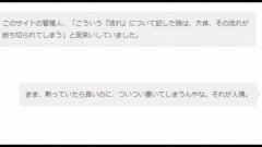 このサイトの管理人、「こういう『流れ』について記した時は、大体、その流れが断ち切られてしまう」と苦笑いしていました。