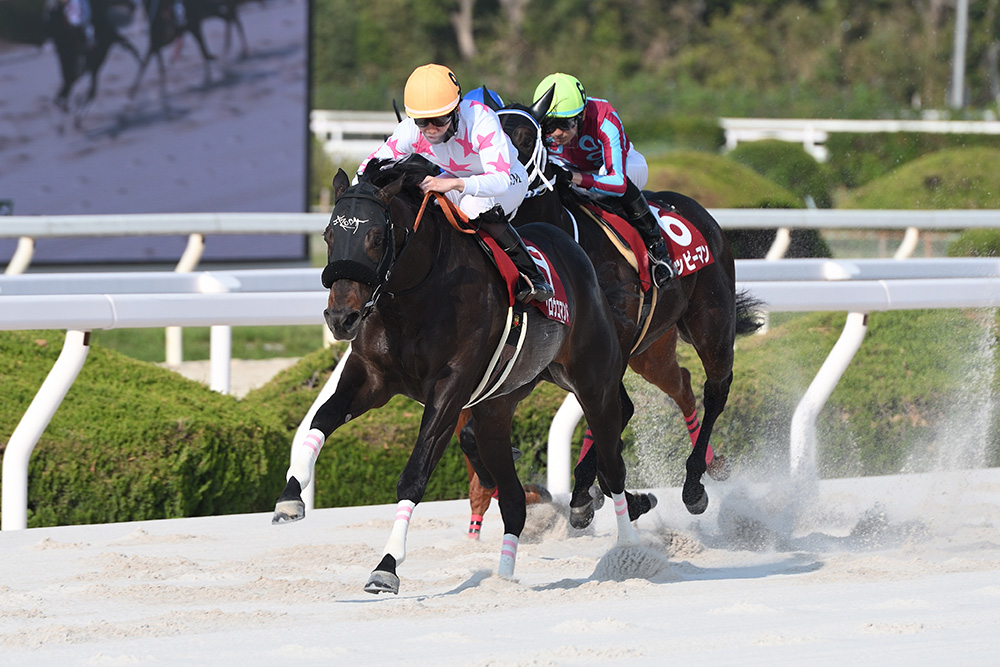 3歳春のダート短距離王を決めるレースとなって2年目の兵庫チャンピオンシップ。2025年の一戦を制したのは戦前1番人気に推されたマテンロウコマンド。12頭立てを先行3番手の外から進むと園田競馬場の短い直線213mでもきっちりと伸び、ハッピーマン(2022.2.16)、リリーフィールド(2022.2.23)等との競り合いをしっかり制して最後は2馬身差を着けての快勝。昨年2024年11月の京都ダート1400mの未勝利戦、明けて1月の中京ダート1400mの1勝クラス、3月の中京ダート1400mの昇竜S(OP)、そして5月の園田ダート1400mの兵庫チャンピオンシップと4連勝でダートグレード競走初制覇を飾りました。松山弘平騎手とのコンビでは4戦4勝としたマテンロウコマンド、母ダイアナヘイローに続いて母仔2代の重賞勝ち馬となってみせました。