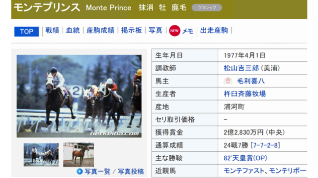 モンテプリンス(1977.4.1)-自分と同じ年に生まれた馬を辿る(No.10)-